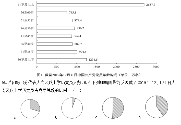 98.截至2019年12月31日,資料所列8種黨員職業(yè)類型中,黨員人數(shù)占比不低于15%的有:( )