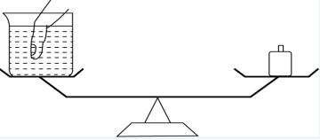 20.如下圖所示,裝有水的燒杯放在天平一端,另一端放置砝碼使天平平衡,此時(shí)再放入一手指在水中,若手指完全靜止在水中且沒有觸碰燒杯壁和燒杯底部,且水也沒有溢出,那么這是天平的狀態(tài)是:
