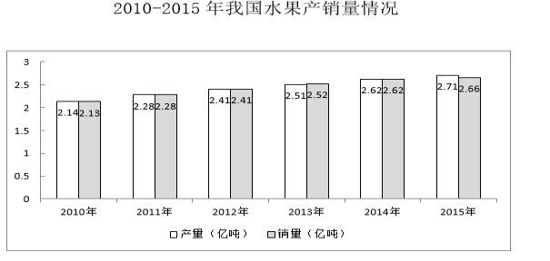 C、“十二五”期間,我國每年的水果產(chǎn)量都高于銷量