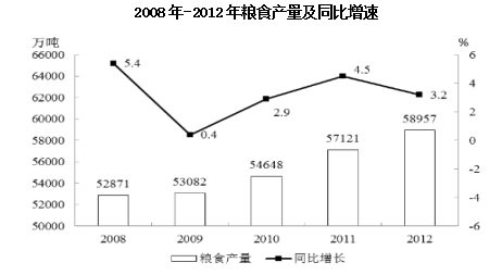 A、從2008—2012年,糧食產(chǎn)量年增長2000多萬噸