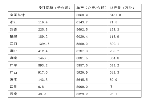 107.2014年早稻播種面積排名前兩位的省(自治區(qū)),當(dāng)年早稻產(chǎn)量和占全國總產(chǎn)量的比重在哪個范圍?( )