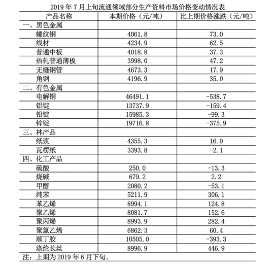 2019年7月上旬流通領(lǐng)域部分生產(chǎn)資料市場價格變動情況表