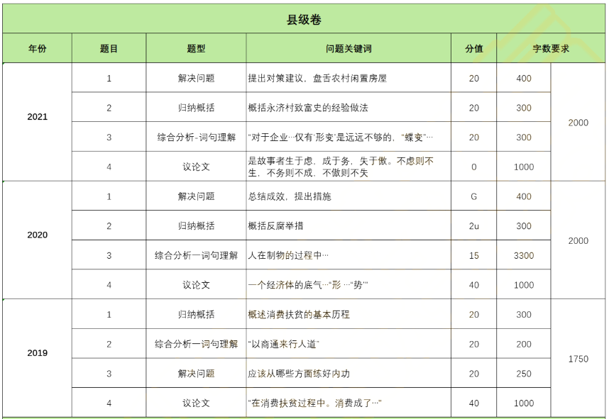 題型:概括題、分析題、對策題、公文題以及文章寫作五大類(2018年沒有申論大作文)