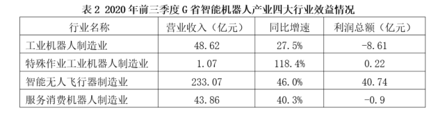D.2020年前三季度,G省智能機器人產(chǎn)業(yè)中利潤率最高的行業(yè)是特殊作業(yè)工業(yè)機器人制造業(yè)