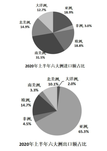 C.六大洲中只有南美洲國家或地區(qū)的進口額超過160億美元