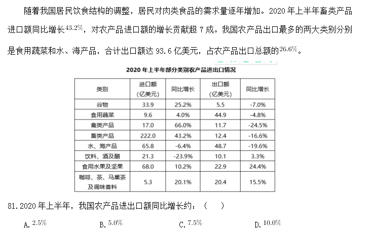 85.根據(jù)以上材料,關于我國2020年上半年農(nóng)產(chǎn)品進出口情況,下列說法錯誤的是:( )