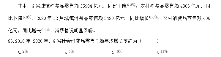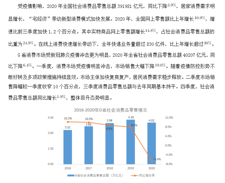 87.與2019年相比,2020年G省社會消費品零售總額占全國的比重( )