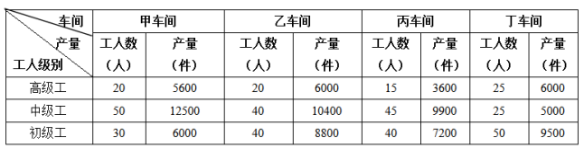 某機(jī)械加工企業(yè)下設(shè)四個(gè)生產(chǎn)車間生產(chǎn)加工同種類型和型號(hào)的產(chǎn)品,并以人均產(chǎn)量評(píng)價(jià)勞動(dòng)生產(chǎn)率。