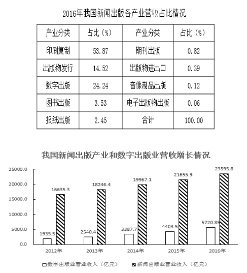 C、2016年,我國(guó)數(shù)字出版業(yè)營(yíng)收占新聞出版產(chǎn)業(yè)營(yíng)收的比例超過(guò)三分之二