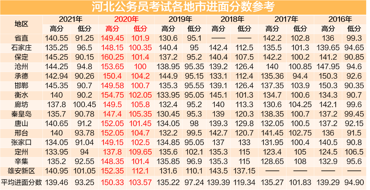 從近幾年進面分數(shù)來說說吧,2020年是疫情最嚴重的時候,邯鄲最高進面分數(shù)已經(jīng)高達149.58分,今年疫情嚴重到已經(jīng)需要延期筆試,更多的考生有了充足的時間備考,所以小編溫馨提示:千萬千萬別放松警惕哦。