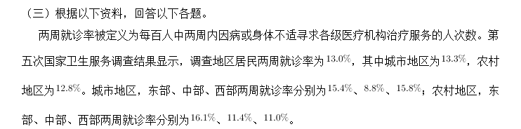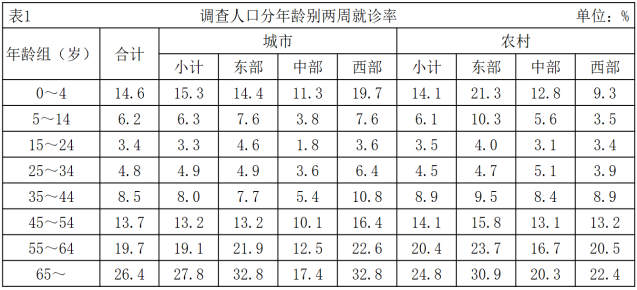 120.關(guān)于第五次國家衛(wèi)生服務(wù)調(diào)查中調(diào)查地區(qū)的兩周就診率,下列說法正確的是:( )