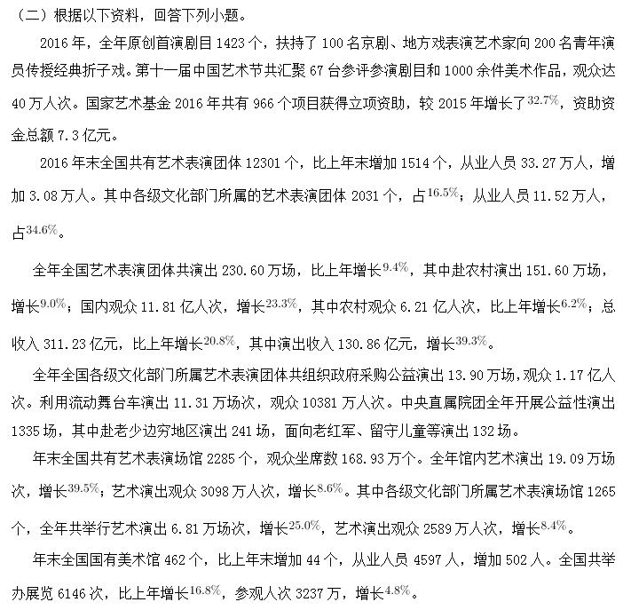 D、全國各級文化部門所屬藝術(shù)表演場館藝術(shù)演出