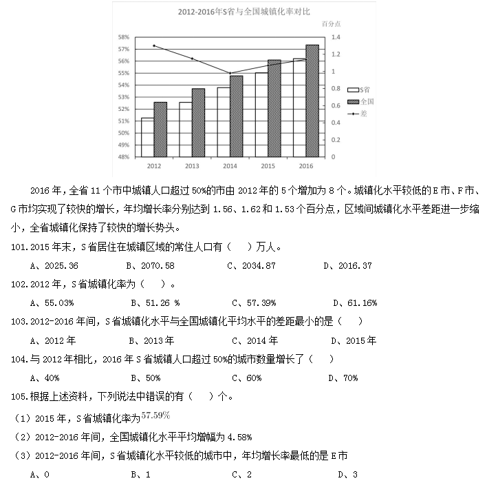 2012-2016年,S省城鎮(zhèn)化水平快速提高。2016年末,S省常住人口3681.61萬人,其中居住在城鎮(zhèn)區(qū)域的常住人口2069.63萬人,較2015年末增加53.26萬人;城鎮(zhèn)化率達56.21%,居全國第16位,比2015年提高1.18個百分點。