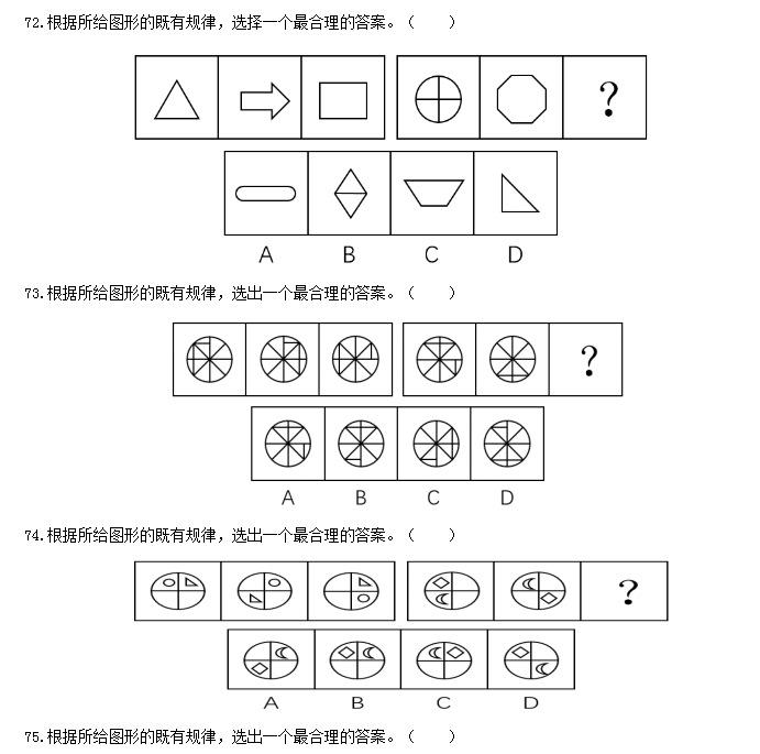 71.根據(jù)所給圖形的既有規(guī)律,選出一個最合理的答案。( )