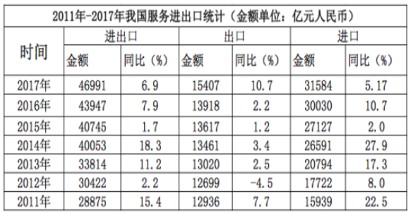 111、2011年至2017年,我國服務(wù)進出口逆差最大的年份是( )