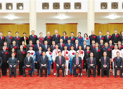 會前,習近平等領導同志親切會見了北京冬奧會、冬殘奧會突出貢獻集體代表、突出貢獻個人和中國體育代表團成員,并同大家合影留念。
