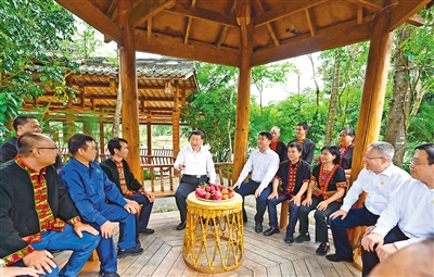 4月10日至13日,習(xí)近平在海南省委書記沈曉明、省長馮飛陪同下,先后來到三亞、五指山、儋州等地,深入科研單位、國家公園、黎族村寨、港口碼頭等進行調(diào)研。