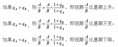 兩數(shù)之比,簡單來講就是兩個統(tǒng)計指標作除法。所求的統(tǒng)計指標在材料中沒有直接給出,但是可以用材料中提到的兩個指標相除來表示。一般材料中提到的統(tǒng)計指標分別用A和B表示,對應(yīng)的增長率分別用