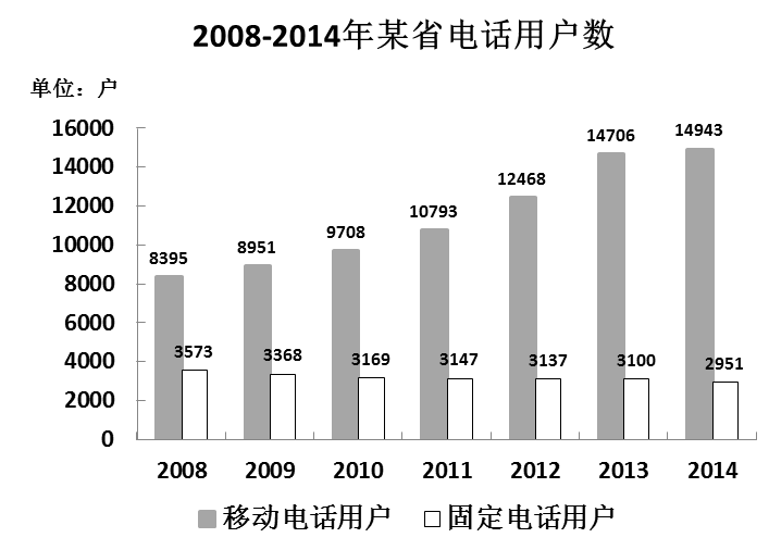 D、固定電話用戶數(shù)逐年減少