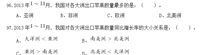 C、2013年1-11月,我國(guó)對(duì)各大洲出口蘋果數(shù)量同比變化量最大的是非洲