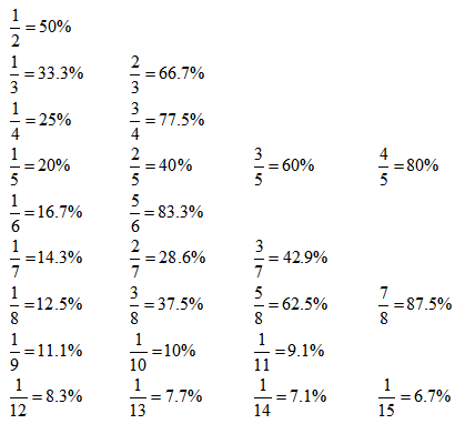 常用百分?jǐn)?shù)與分?jǐn)?shù)的轉(zhuǎn)化