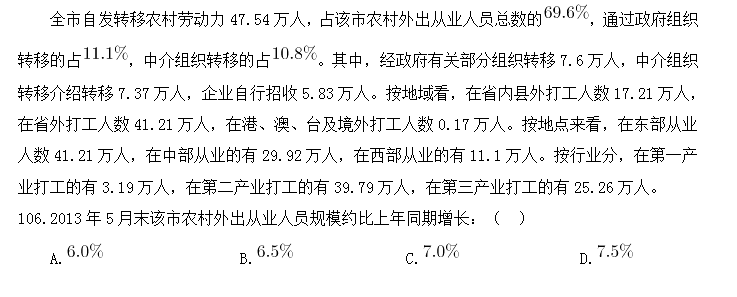 110.關(guān)于2013年5月末該市農(nóng)村外出從業(yè)人員,能從上述資料中推出:( )