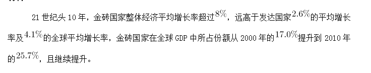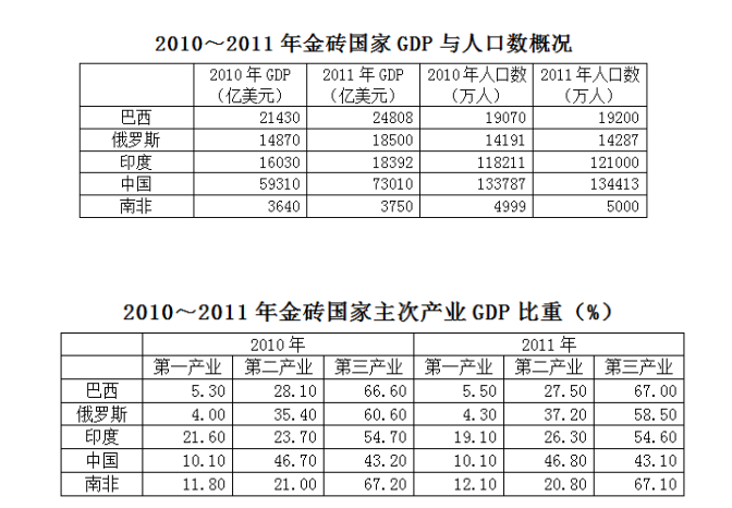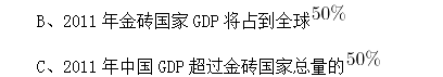106.2000~2010年金磚國家的GDP總量占全球份額提升了:( )