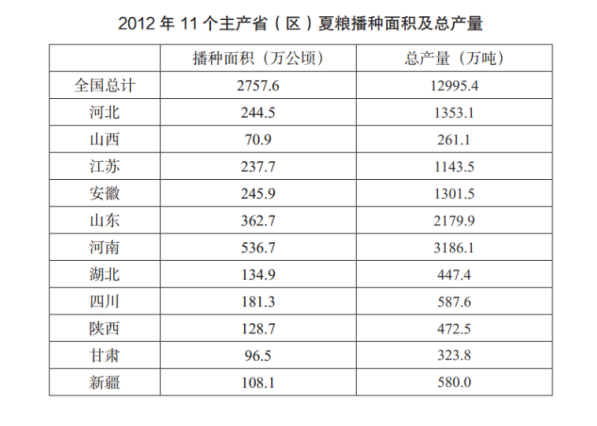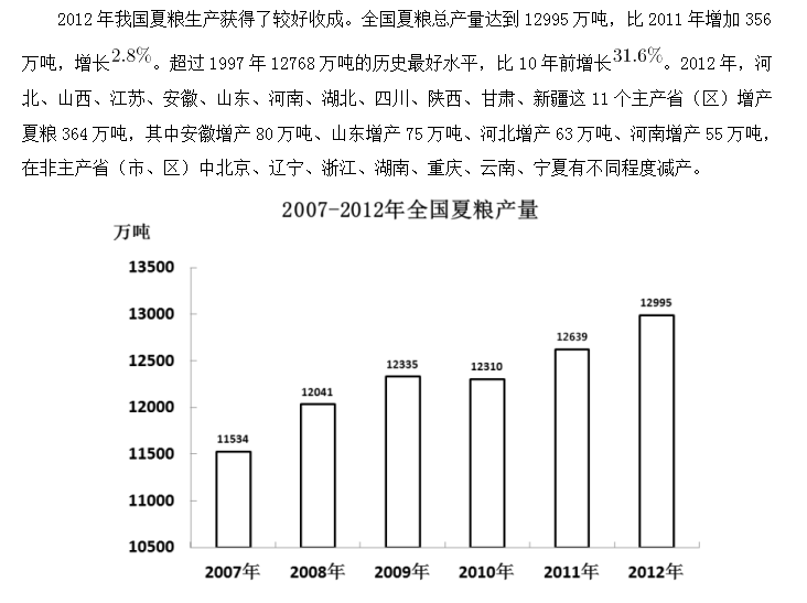 A、2012年,11個主產(chǎn)?。▍^(qū))夏糧增產(chǎn)量超過了全國增產(chǎn)總量