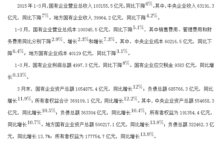 C、2015年3月末,國(guó)有企業(yè)資產(chǎn)總額同比增長(zhǎng)不到12萬(wàn)億元