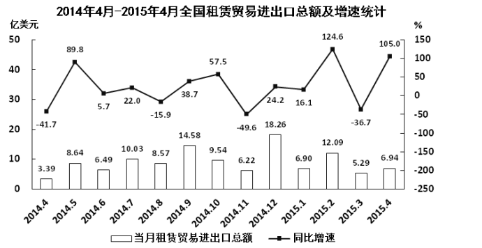 A、2015年4月全國(guó)租賃貿(mào)易進(jìn)出口額比2013年4月翻了一番