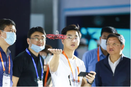 2021年5月27日,第十二屆中國衛(wèi)星導航成就博覽會上,技術人員向嘉賓展示裝有北斗導航的無人機。求是圖片馬悅/攝
