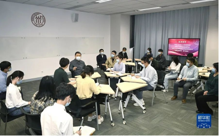 2022年4月25日,習近平總書記來到中國人民大學考察調(diào)研。這是總書記在立德樓觀摩思政課智慧教室現(xiàn)場教學并參與討論。新華社記者燕雁/攝