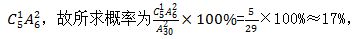 5排共有30個(gè)格子,每排格子數(shù)相同,則每排有30÷5=6個(gè)格子。由于兩個(gè)棋子相互制約,并且先放綠色還是先放紅色不影響最終結(jié)果,并且第一個(gè)棋子選哪個(gè)位置,并不會(huì)影響第二個(gè)棋子的放置,所以我們可以用定位法去處理。先從30個(gè)格子中任選1個(gè)安排紅色棋子,此時(shí)還剩下29個(gè)空格子。若想2個(gè)棋子在同一排,則綠色棋子只能挑選紅色棋子所在排剩余5個(gè)格子中的一個(gè),故2個(gè)棋子在同一排的概率為