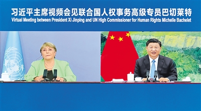 5月25日,國家主席習(xí)近平在北京以視頻方式會見聯(lián)合國人權(quán)事務(wù)高級專員巴切萊特。