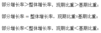 若部分增長率大于整體增長率,則比重上升;