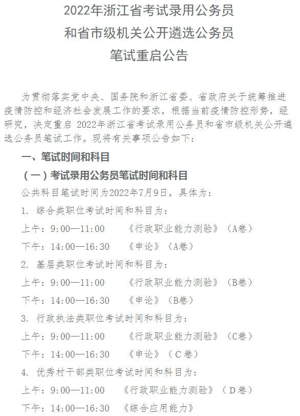 最新消息!2022年浙江公務(wù)員考試筆試時(shí)間公布:7月9-10日舉行!官方通知如下:
