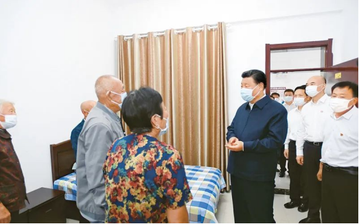 2021年9月13日至14日,中共中央總書記、國(guó)家主席、中央軍委主席習(xí)近平在陜西省榆林市考察。這是14日下午,習(xí)近平在綏德縣張家砭鎮(zhèn)郝家橋村互助幸福院,同村里的老人親切交流。新華社記者李學(xué)仁/攝