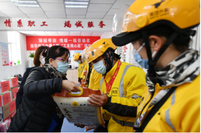 為解決環(huán)衛(wèi)工人吃早餐難問題,河南省洛陽市為早班一線環(huán)衛(wèi)工人提供免費早餐,費用由洛陽市各縣(市)區(qū)工會、財政和環(huán)衛(wèi)企業(yè)進行補貼。圖為2021年12月19日清晨,環(huán)衛(wèi)工人在洛陽市洛龍區(qū)牡丹大道旁的“愛心驛站”用餐后離開。 新華社發(fā) 黃政偉/攝