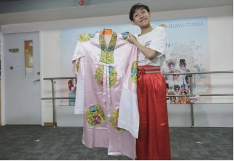 香港粵劇小演員利文喆展示當(dāng)年給習(xí)近平總書(shū)記表演時(shí)穿的戲服(2022年5月29日攝)。新華社記者王申/攝