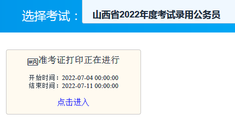 點擊進入:2022年山西公務員考試準考證打印入口(7月4日至7月10日)