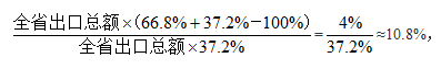 【答案】B【解析】由問題“2020年江蘇高新技術(shù)產(chǎn)品出口額中機(jī)電設(shè)備出口額”可知,“高新技術(shù)出口額”和“機(jī)電設(shè)備出口額”之間存在重疊;且問題中體現(xiàn)“至少”,故此題考慮容斥極值的應(yīng)用。此題中,部分為“機(jī)電設(shè)備出口額”,記為“A”;整體為“高新技術(shù)產(chǎn)品出口額”,記為“B”。根據(jù)“機(jī)電設(shè)備、高新技術(shù)產(chǎn)品出口占全省出口總額的比重分別為66.8%和37.2%”以及容斥極值問題的公式(A∩B)最小值=A+B-I可得,2020年江蘇高新技術(shù)產(chǎn)品出口額中機(jī)電設(shè)備出口額的比重至少為: