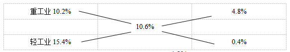 例3:2011年8月新疆全區(qū)規(guī)模以上工業(yè)實(shí)現(xiàn)增加值235.25億元,比上年同期增長10.6%,其中輕工業(yè)實(shí)現(xiàn)增長15.4%,重工業(yè)實(shí)現(xiàn)增長10.2%。