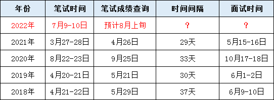 上表歷年重慶公務(wù)員成績發(fā)布時(shí)間的匯總,近幾年市考從筆試到成績查詢間隔時(shí)間一般在30天左右,按照一個(gè)月的時(shí)間來估算算,2022年重慶大概率會(huì)在8月上中旬發(fā)布成績,準(zhǔn)確的時(shí)間請(qǐng)以官方公告為準(zhǔn)!