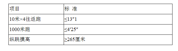 考生因受傷、心腦血管疾病、呼吸道疾病、懷孕等原因不宜參加體能測評的,應(yīng)主動放棄,否則后果自負。體能測評結(jié)果以現(xiàn)場為準,不進行復測。體測各項結(jié)果均合格的考生參加面試,有一項不合格的,取消面試資格。