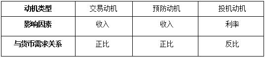 最后,我們可以總結(jié)出以上三種動機(jī)影響貨幣需求的因素及關(guān)系。交易動機(jī)和預(yù)防動機(jī)帶來的貨幣需求與利率沒有直接關(guān)系,它是收入的函數(shù),并且與收入成正比;而投機(jī)動機(jī)帶來的貨幣需求則與利率成反比,因?yàn)槔试礁呷藗兂钟胸泿胚M(jìn)行投機(jī)的機(jī)會成本也就越高。