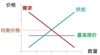 而從圖1中很明顯可以看出來,最高限價(jià)低于均衡價(jià)格。
