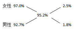 例2:2015年某市統(tǒng)計(jì)局進(jìn)行了一次有關(guān)該市控制吸煙狀況的調(diào)查。對(duì)“公共場(chǎng)所控?zé)煑l例修訂及立法”問題的調(diào)查結(jié)果顯示:95.2%的受訪市民表示支持,2.9%的表示不支持,1.9%的表示無所謂;97.0%的女性受訪市民表示支持,92.7%的男性市民表示支持。