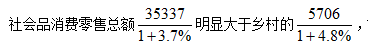 【答案】B【解析】材料數(shù)據(jù)可知,2021年11月我國社會(huì)消費(fèi)品零售總額41043億元。其中,城鎮(zhèn)社會(huì)品消費(fèi)零售總額為35337億元,同比增長(zhǎng)3.7%;鄉(xiāng)村社會(huì)品消費(fèi)零售總額為5706億元,同比增長(zhǎng)4.8%。若按照增長(zhǎng)基本公式來算的話需先利用城鎮(zhèn)和鄉(xiāng)村的數(shù)據(jù)計(jì)算出2020年11月我國社會(huì)消費(fèi)品零售總額后再利用現(xiàn)期值比基期值減1來計(jì)算出結(jié)果,具體列式為: